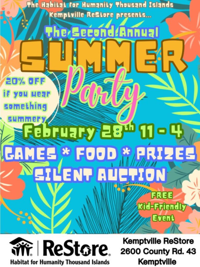 We’re cranking up the heat and pretending that it’s summer for the day at the Habitat for Humanity Thousand Islands ReStore in Kemptville! There’ll be summery music, food, games, prizes, discounts and a silent auction – all to raise funds for building affordable homes in our communities.
