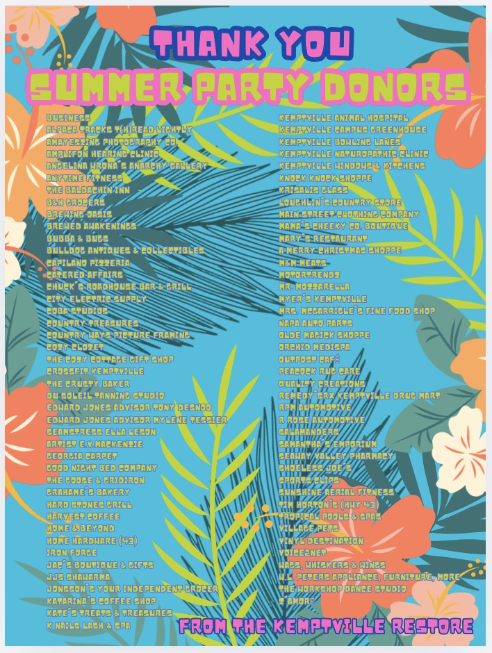 “I first started throwing Summer Parties in February back in 1999. It had been snowing for 21 days, no sun. My BFF had SAD. I had to do something. And, so, the Summer Party in February was born,” says event co-organizer Elizabeth MacKenzie. “It was so incredibly therapeutic, like a one-day vacation, I just had to keep throwing Summer Parties every winter, but I’d never thrown one at a store before, and as a fundraiser too!” adds MacKenzie. “The local business owners of Kemptville, Merrickville, Prescott, Hallville and Winchester have been incredible – so generous with their donations and we’re all so excited about the event,” says event co-organizer Amie Seguin, adding, “The mayor of North Grenville is coming – and Moose FM!”.